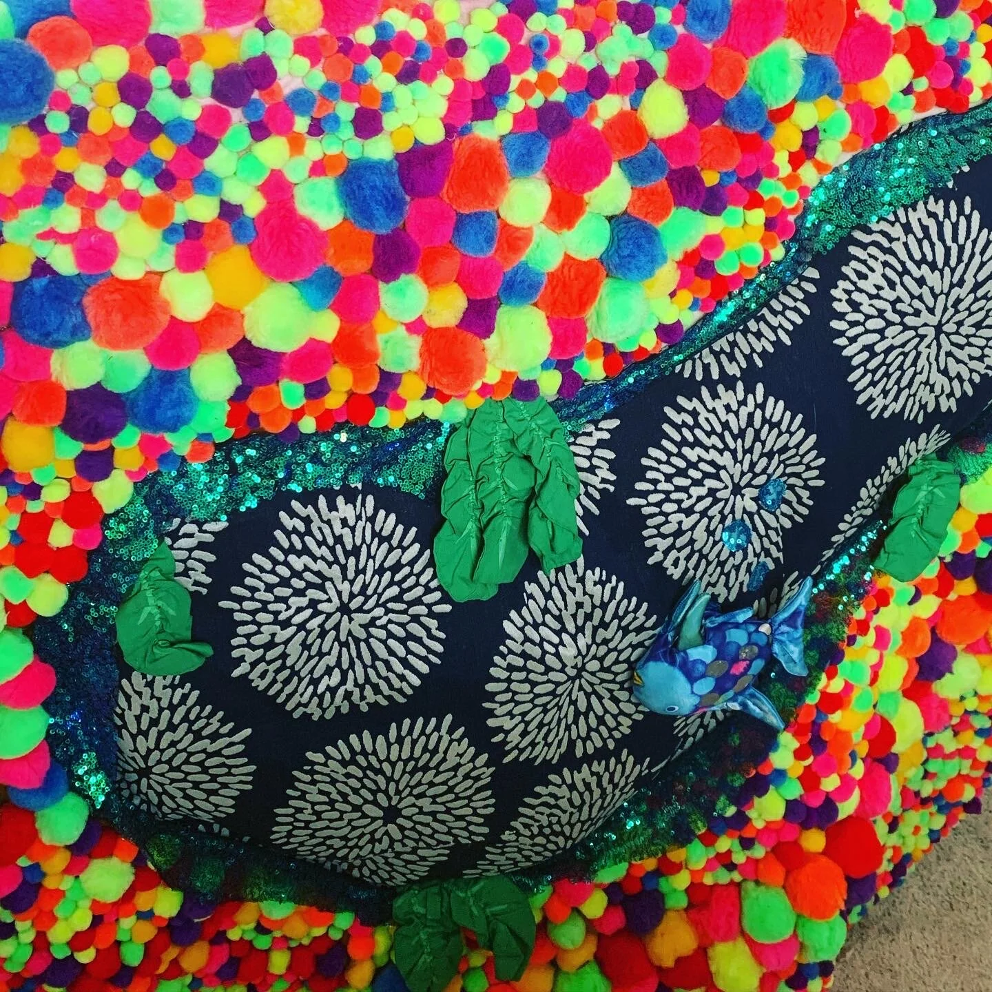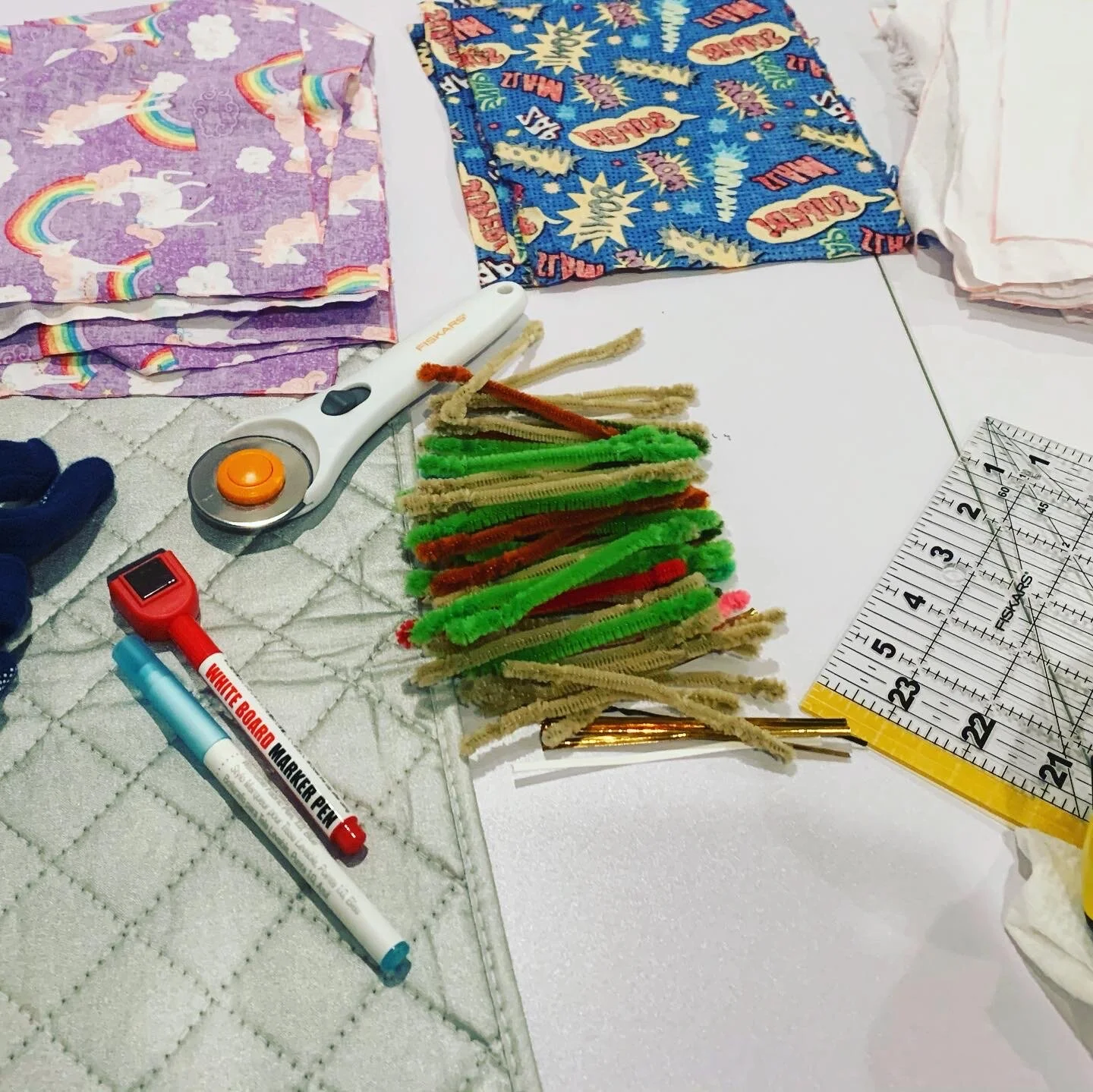 Winnie Storey is an artist who recently came into SJMQT’s sphere by showing in two different exhibitions at SJMQT, Know Your Meme: Stitching Viral Phenomena and Form and Function: Fiber Arts for the 21st Century, our Second Members Biennial. You may also remember her from our Fall COmmunity day where she facilitated a pipe cleaner art activity! Winnie has been steadfastly creating fabric masks during Shelter in Place, a departure from her fine art practice.