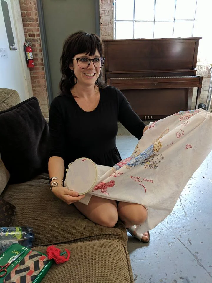 She has participated in juried shows throughout the San Francisco Bay Area and the country and has been invited to participate in groups shows at the Berkeley Art Center, Berkeley Civic Center, The Mosser Hotel, Berkeley Wealth Management and the Roll Up Gallery. She has also had solo shows at Farley’s Café, Hello Stitch Quilting and Sewing Studio, and The Totally Rad Gallery.