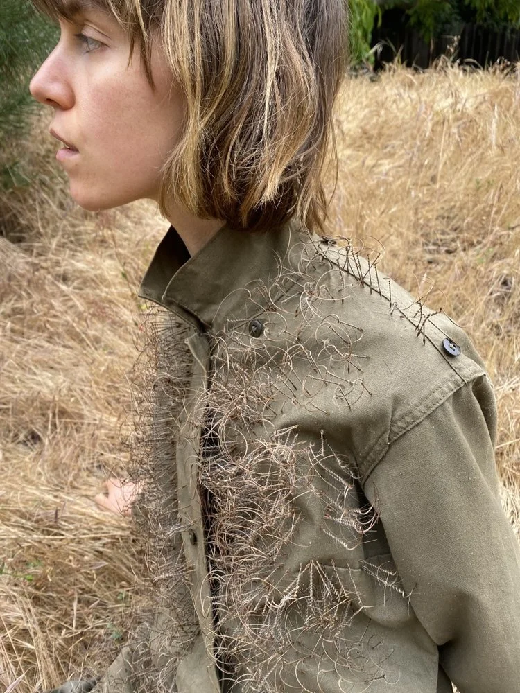Olivia Ronan is an interdisciplinary visual artist and creative mender. She completed her BFA at University of California, Santa Cruz and currently teaches fiber arts and hand sewn repair in Aptos, California. Her practice is about getting into the weeds of entwined existence. Through sculpture and performance, she considers ideas of ephemerality, alteration, and ecology; the liminality of events, objects, and entities, the unfolding narrative that lies behind their impact, and our collective role in that life cycle. She engages forms that embody emotional and mental change through line, weight, and texture and weaves poetic juxtapositions between elements defined as nostalgic versus discarded, or precious versus overlooked. In cohesion with these reflections, she explores various forms of co-making and creative inquiry with plants. She is particularly interested in the ways time, locality, and context shape our connections to plants and she likes to re-envision relationships to plants who have become formally estranged or disregarded by those around them.