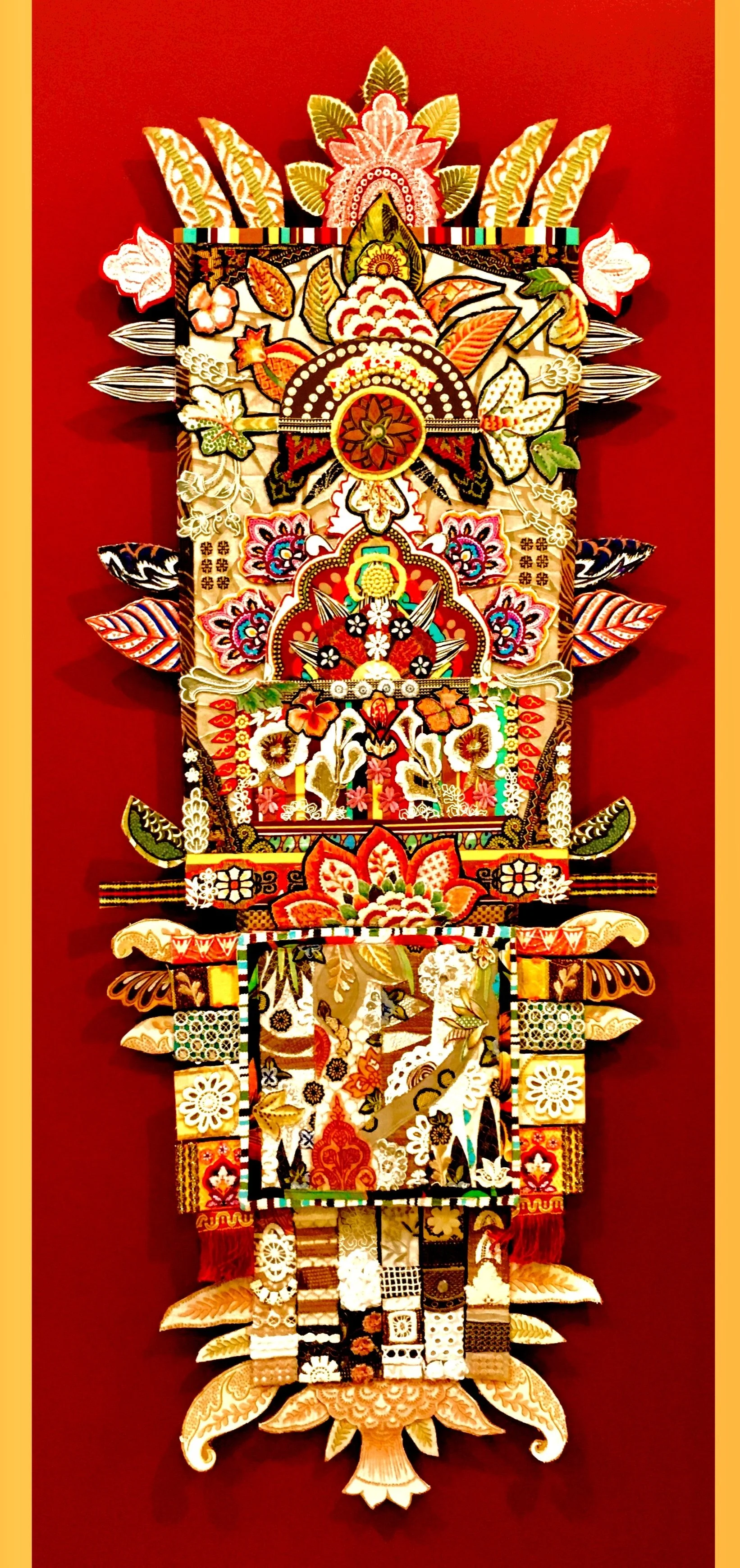 You'll start by building a stuffed shape, covering it with a foundation of beautiful fabrics, and then having a wonderful time decorating and developing it. You'll learn to make a variety of fun shapes and parts to attach to your vessel, adding texture and dimension. You can build a base and a top, shaped as you choose it to be. This workshop is packed with learning many techniques for going all out with decorating and embellishing your art, which can include all kinds of wrapping and making of various objects to hang on your piece, as well as tassels, fringe, pompoms, and so much more.